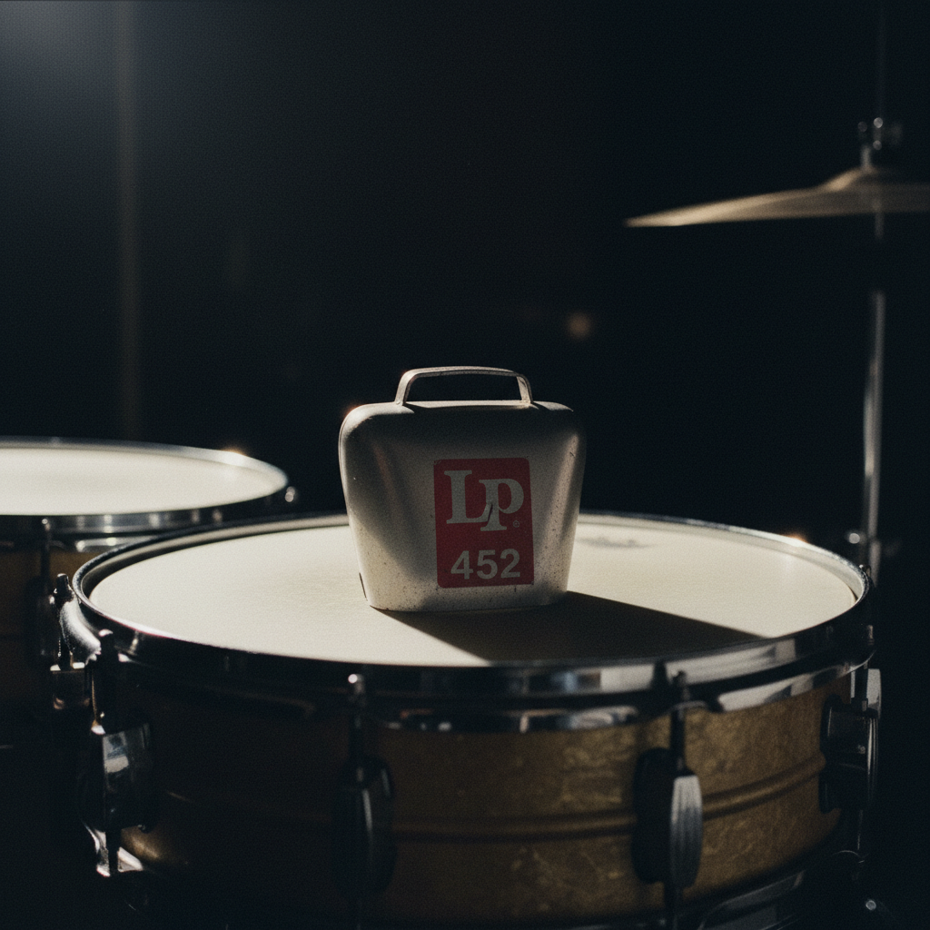 A cowbell hit is not a sustained tone. Decay is fast, typically under 200 milliseconds at the fundamental frequency before the higher partials dominate and the ring drops into the track's noise floor. What's left after the initial transient is a metallic shimmer, more felt in the mix than consciously heard.
